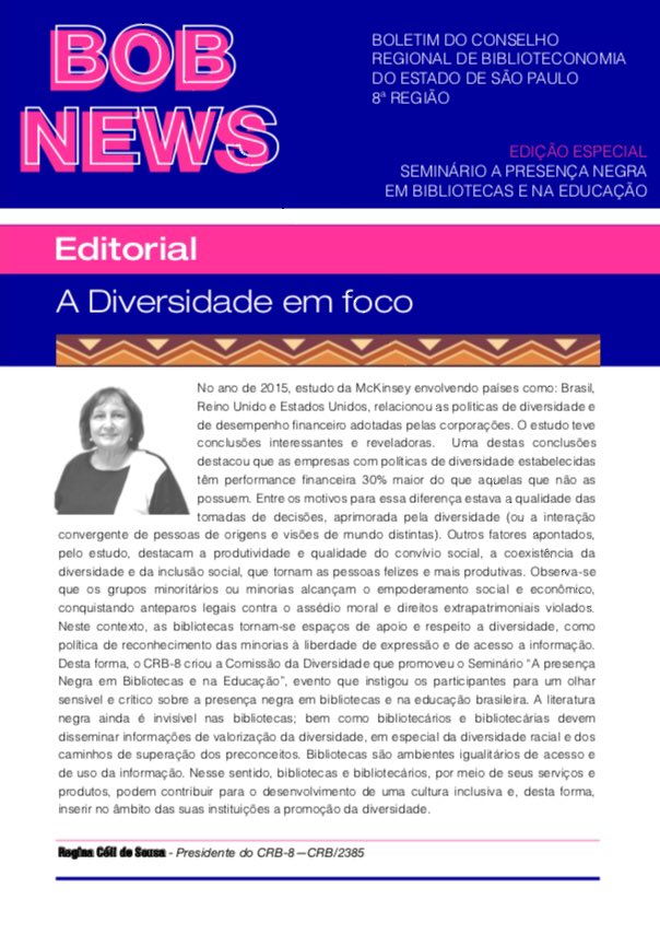 Presença Negra em Bibliotecas e na Educação |“A literatura negra ainda é invisível […] bibliotecár@s devem disseminar informações de valorização da diversidade, em especial da diversidade racial e dos caminhos de superação dos preconceitos.” via @crb8sp https://t.co/k5Yu38zAvt pic.twitter.com/m1VnoSaPGo