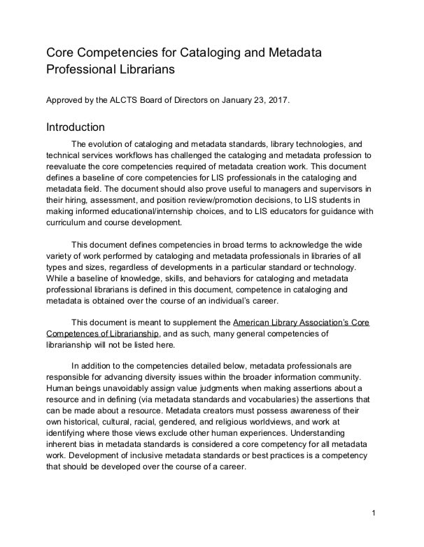 #Competências essenciais para bibliotecários profissionais de #catalogação e #metadados (2017)| Para pensar os conhecimentos, habilidades e comportamentos para catalogadores, segundo a American Library Association’s Core Competences of Librarianship https://t.co/2qDMZNb4lz pic.twitter.com/aIGMNTIg9B