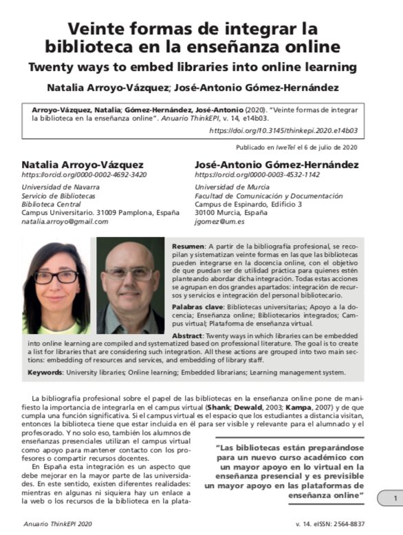 Vinte maneiras de integrar a #biblioteca ao ensino online | “As ações que o bibliotecário integrado realiza no ensino online, de acordo com a bibliografia, podem ser divididas em duas grandes áreas: apoio ao #ensino e envolvimento nele.” #Educação https://t.co/vA6iUEGr7m pic.twitter.com/tMH9Pua3tu