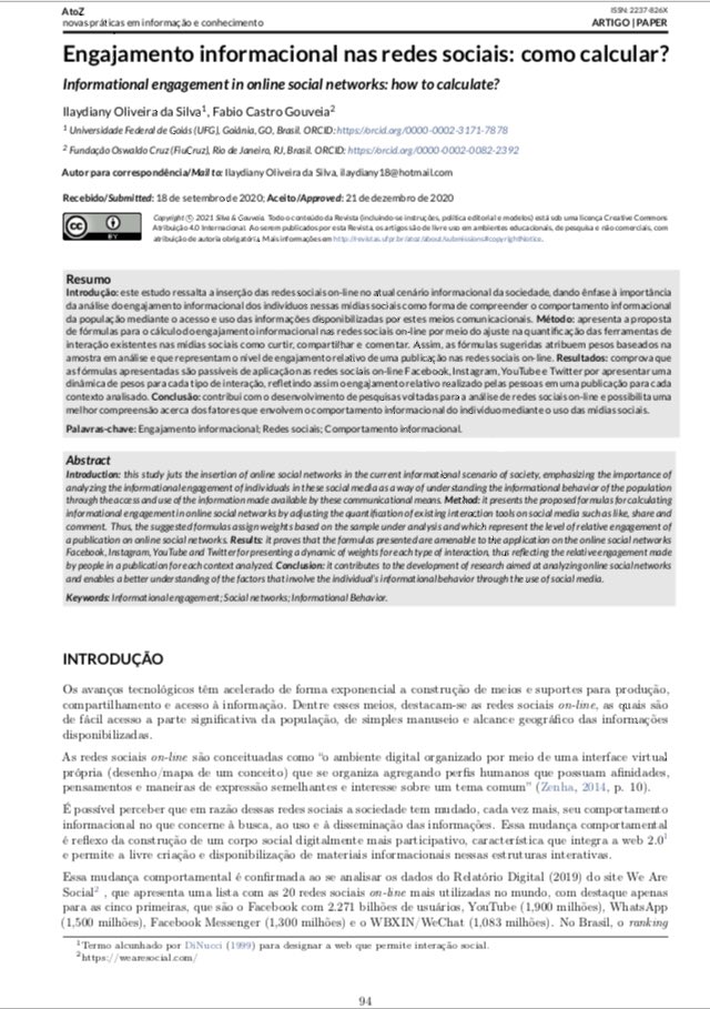 #Engajamento informacional nas redes sociais: como calcular? l “De acordo com a DirectLabs (2009), dentre as métricas informacionais capazes de serem aplicadas nessas redes citam-se: visibilidade, influência, participação e engajamento.” #RedesSociais https://t.co/RUHIKfi0M0 pic.twitter.com/lswoNb3wWN