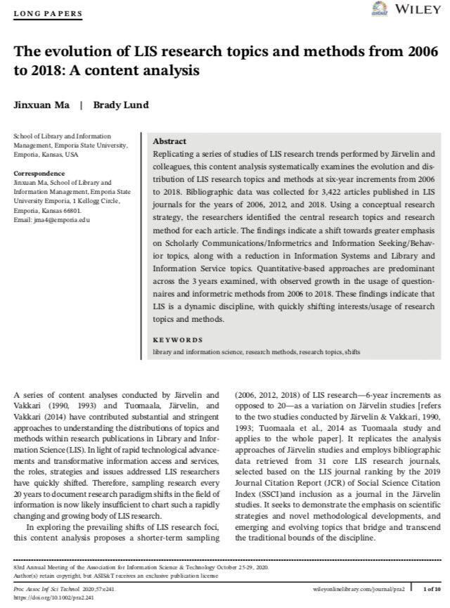 A evolução dos temas e métodos de pesquisa em Ciência da Informação de 2006-2018: uma análise de conteúdo l “[…] as descobertas indicam que a CI é dinâmica, com rápida mudança de interesses/uso de tópicos e métodos de pesquisa” #CI #MetodologiaDaPesquisa https://t.co/14f8ZyKBrO pic.twitter.com/AwkDk344E2