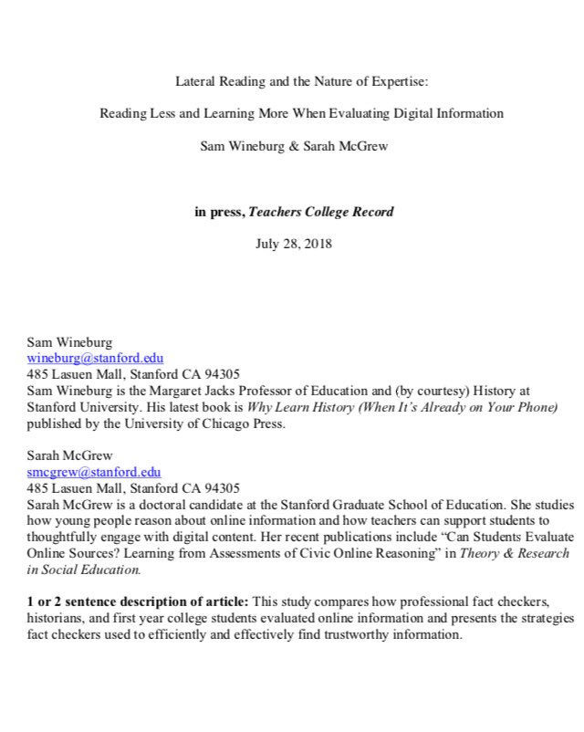 #LeituraLateral e a natureza da Expertise: lendo menos e aprendendo mais na avaliação da informação digital l Estudo apresenta estratégias utilizadas por verificadores de fatos para encontrar informações confiáveis de modo eficiente e eficaz #Desinformação https://t.co/7eJdSOzsFZ pic.twitter.com/mObuq1plSL