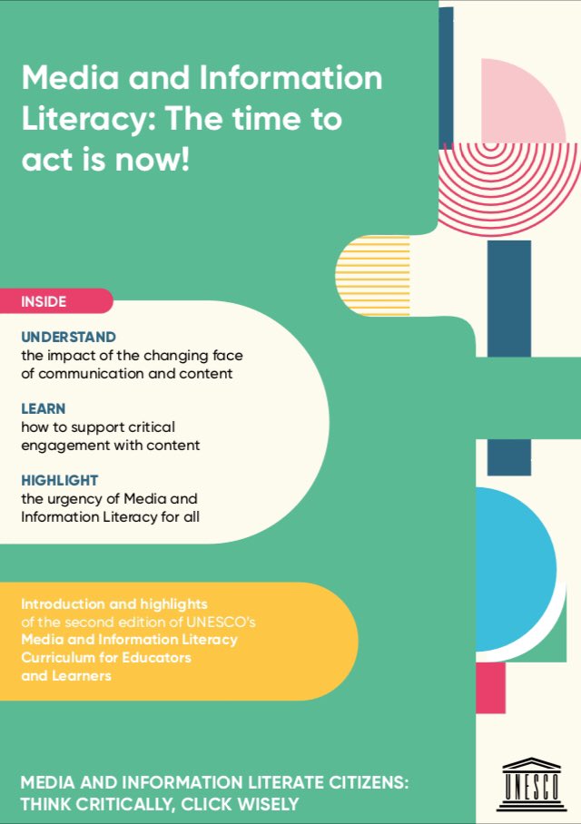 Educação midiática e informacional: a hora de agir é agora, da UNESCO (2021) l “A educação midiática e informacional deve ser uma parte fundamental da aprendizagem ao longo da vida.”