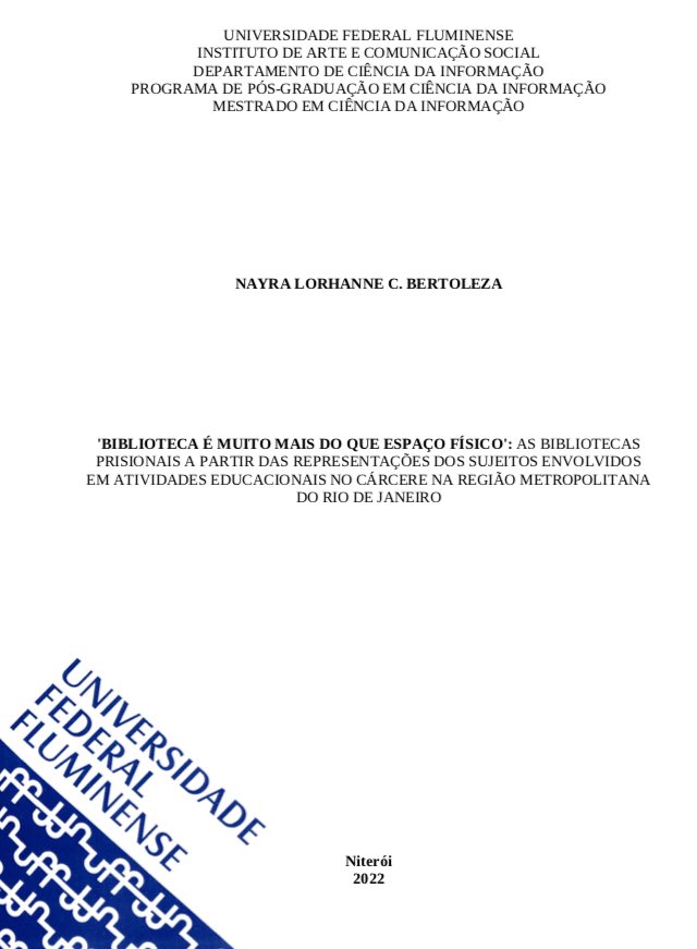 Biblioteca é muito mais do que espaço físico: as bibliotecas prisionais a partir das representações dos sujeitos envolvidos em atividades educacionais no cárcere na Região Metropolitana do Rio de Janeiro l #BibliotecasPrisionais app.uff.br/riuff/handle/1… https://t.co/IU4EadKA7i