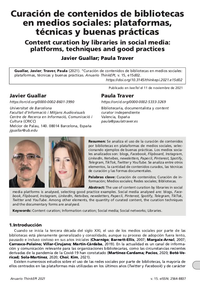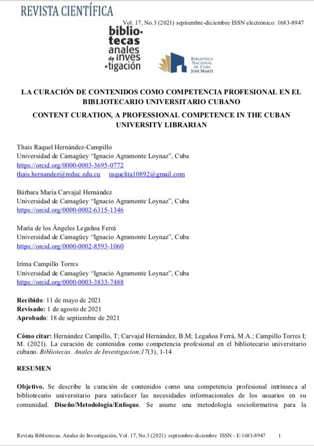 Estado da informação em 2021: notícias sobre documentação, bibliotecas, internet, conteúdos digitais e comunicação científica l Veja um resumo do que aconteceu na área, mês a mês. No fim um calendário de datas comemorativas #Notícias #CuradoriaDeConteúdo doi.org/10.3145/thinke… https://t.co/y5p8v715ns